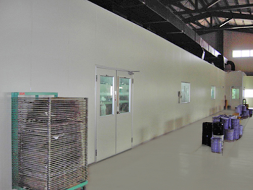 一條低溫塗裝地軌線設備。